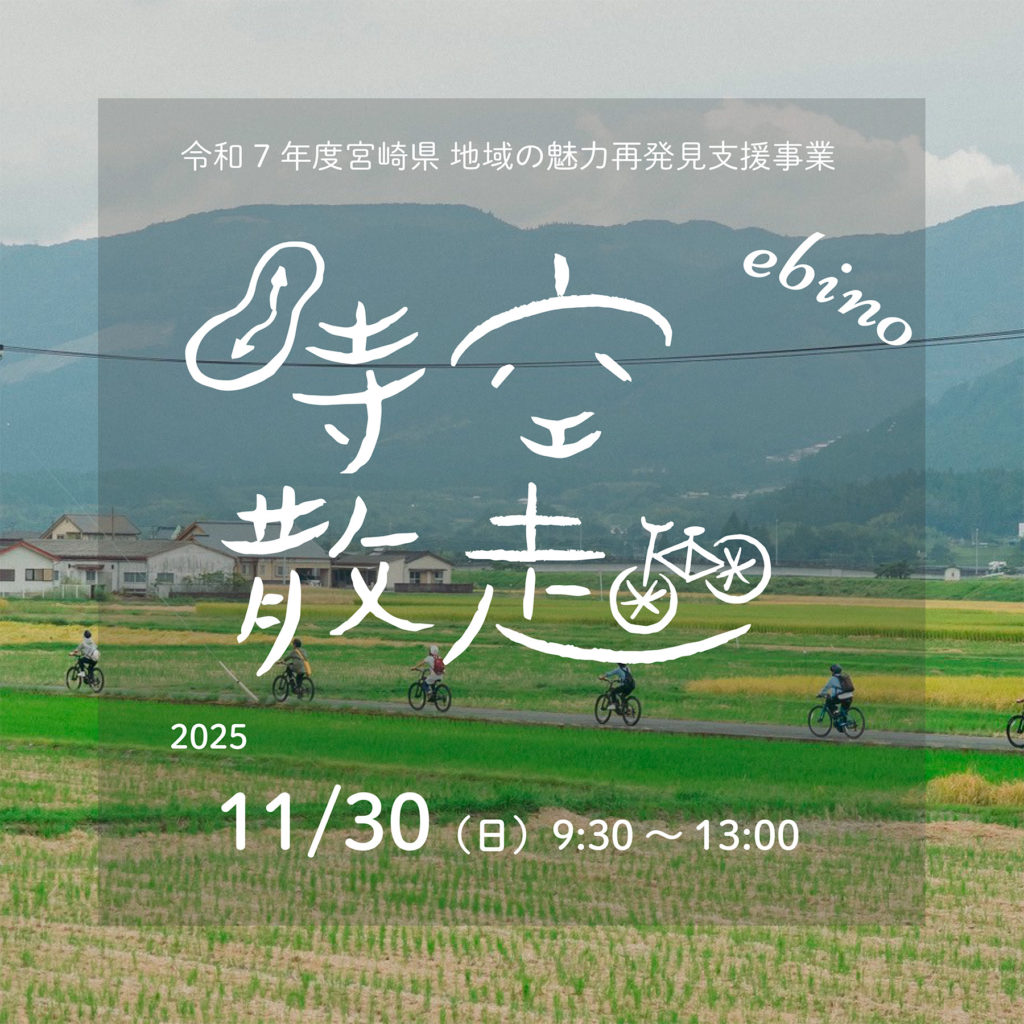 えびのは宮崎県、鹿児島県、熊本県の県境に位置し、多種多様な人々の交流から独特の都市文化を築いています。そんなえびののまちなかに息づいている歴史、文化、物語の現場を、自転車で巡って体感し、語り合い、楽しもうというコミュニティ・サイクル・ツーリズムが「えびの時空散走」です。